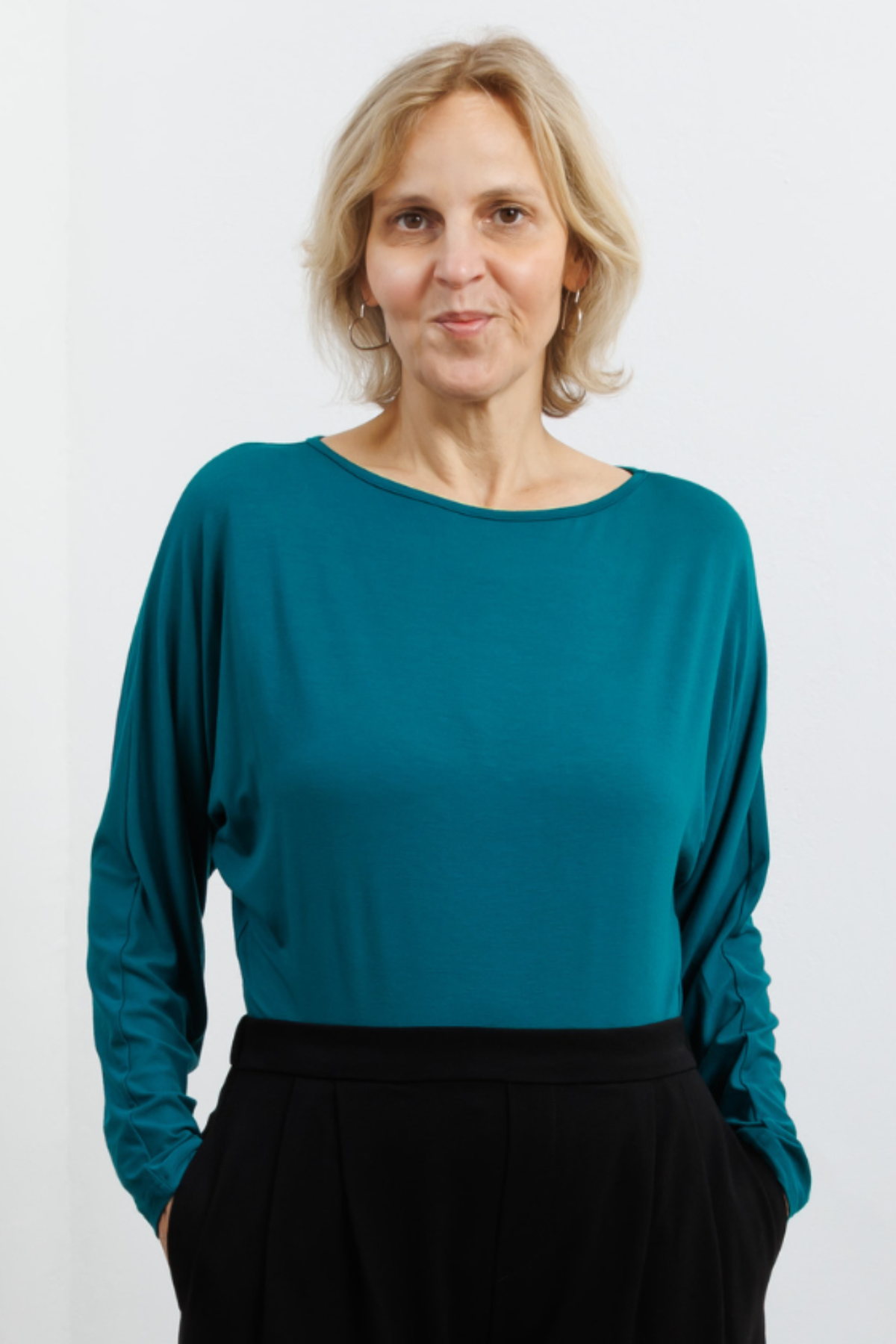 Tipp: Dieses Shirt kann man passend, auf Figur sitzend tragen oder etwas weiter. Trotz der Ärmelweite ist es super unter unseren Jacken tragbar.