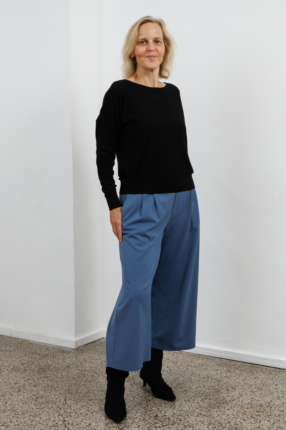 Kurz: Culotte-Look. Beinlänge der Hose ca. 87 cm gemessen ab Bund.