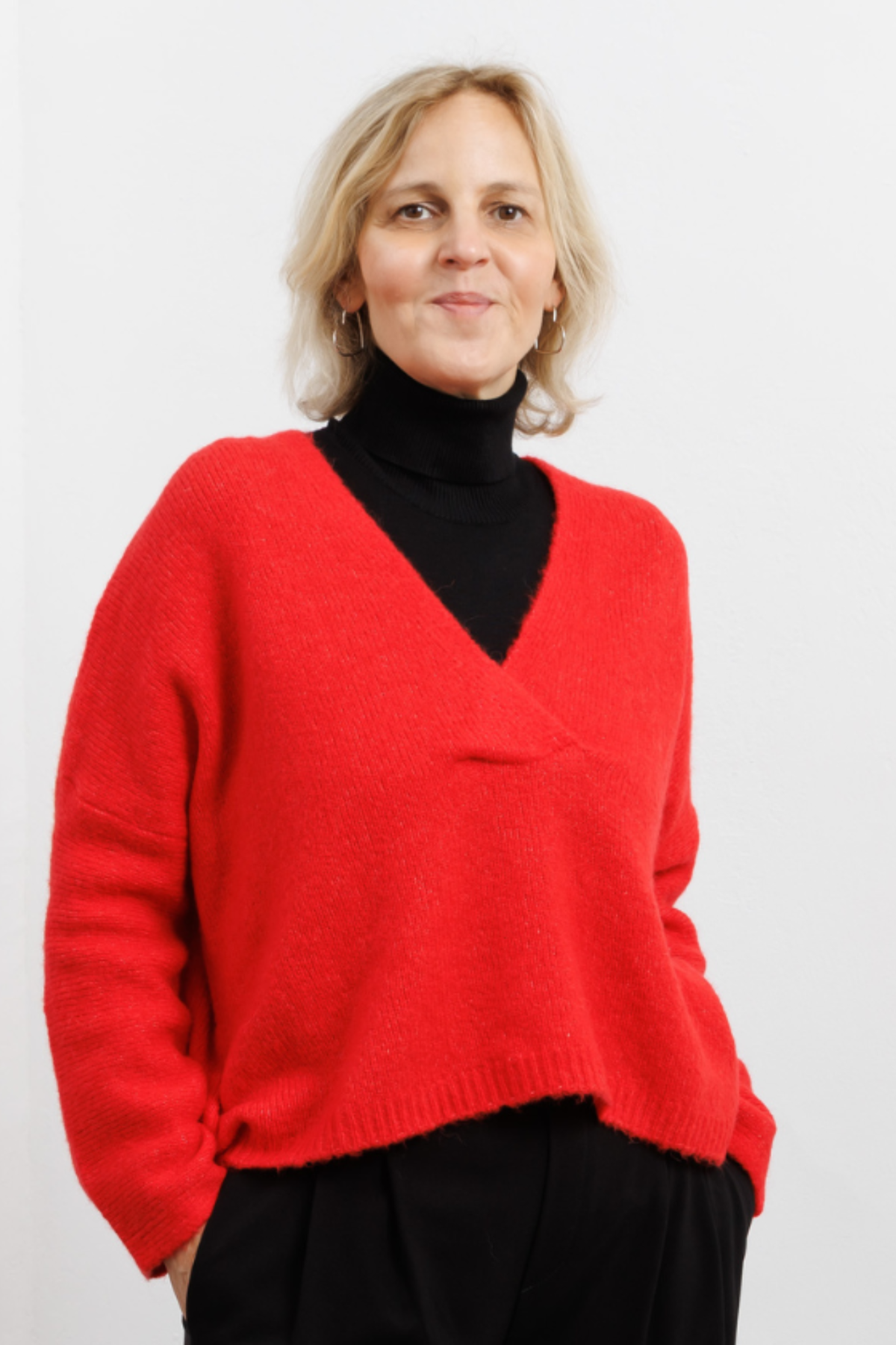 Tipp: Dieser Pullover passt von der Länge und dem Style am besten zu hochsitzenden Röcken und Hosen.