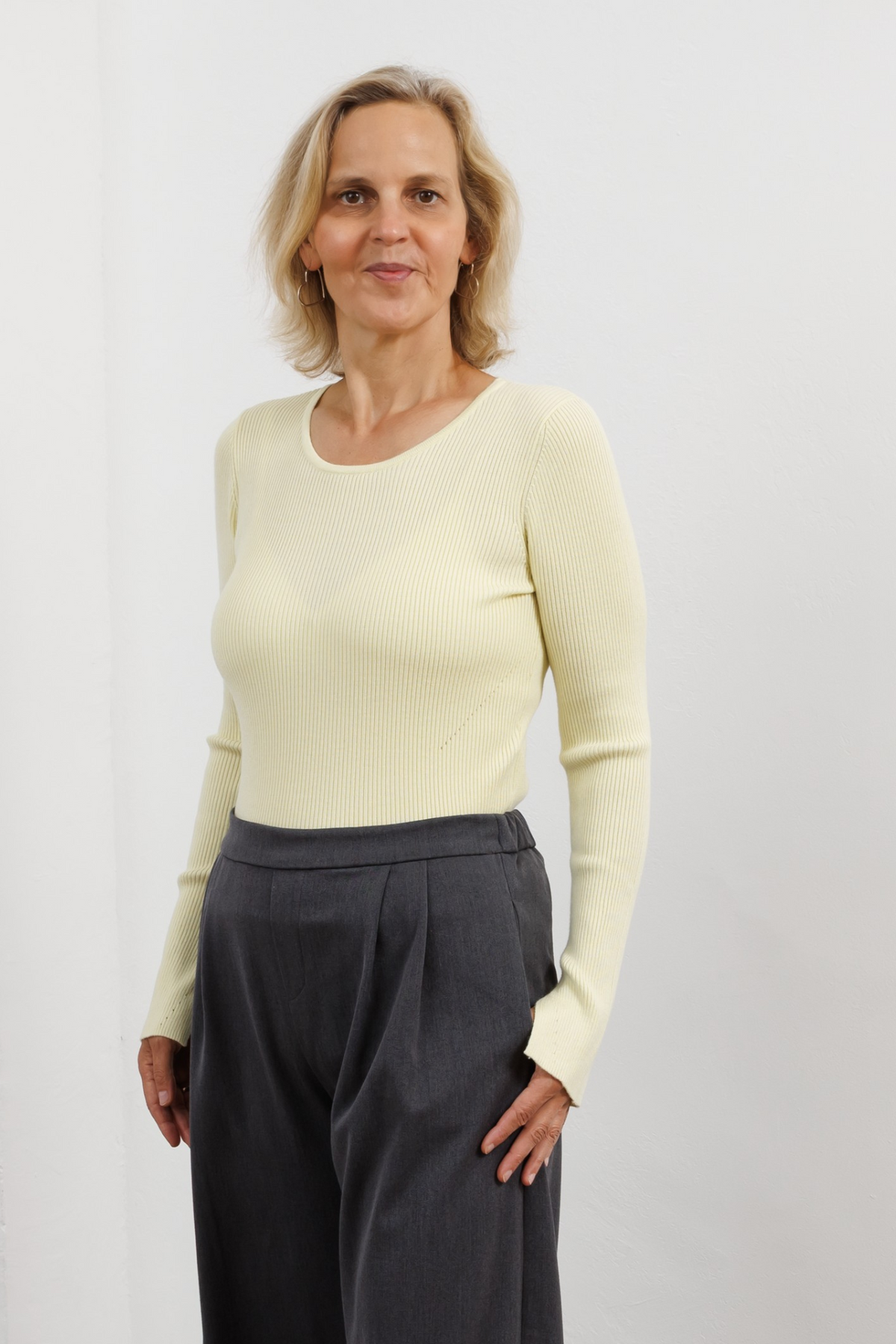 Figurnaher Langarmpullover aus Jerseystrick. Sehr angenehm und weich auf der Haut. Mit Rundhalsausschnitt und seitlichen Schlitzen an den Ärmeln.
